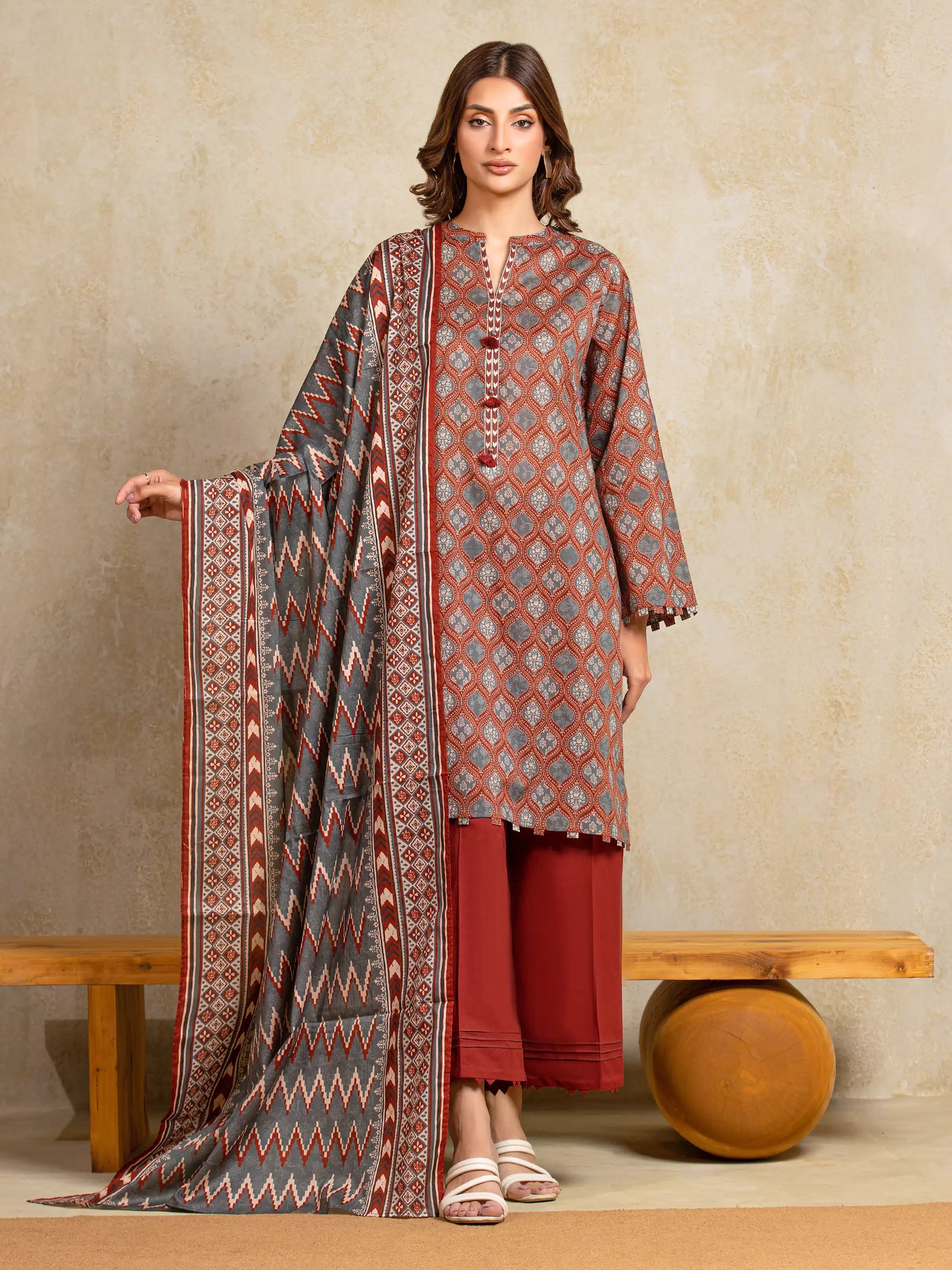The Edenrobe EWU5A3-35920-3P Khaddar is a masterpiece designed to make you feel like a queen on your special day. Crafted with exquisite attention to detail, this ensemble is a perfect blend of elegance, comfort, and style.