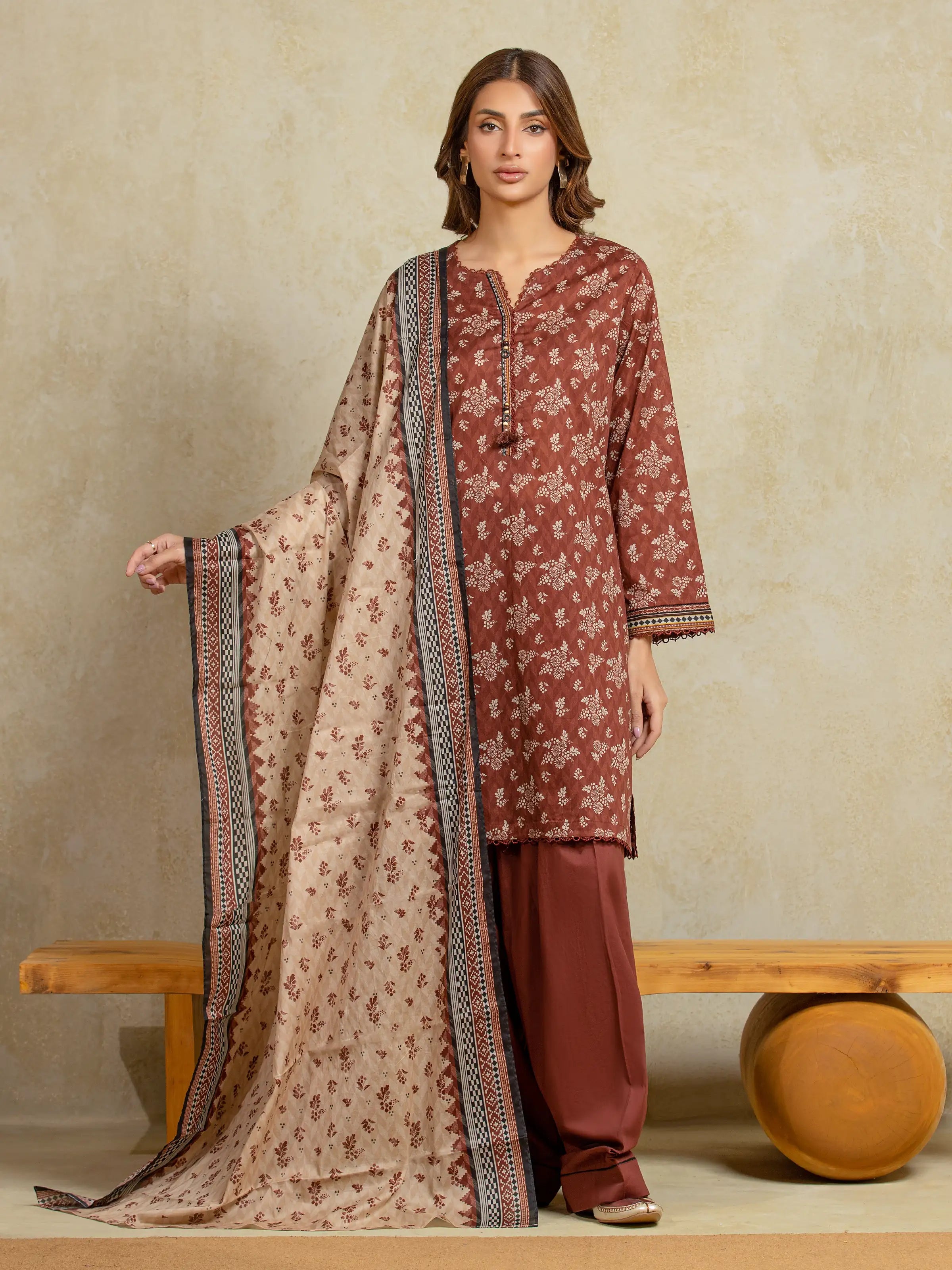 The Edenrobe EWU5A3-35936-3P Khaddar is a masterpiece designed to make you feel like a queen on your special day. Crafted with exquisite attention to detail, this ensemble is a perfect blend of elegance, comfort, and style.