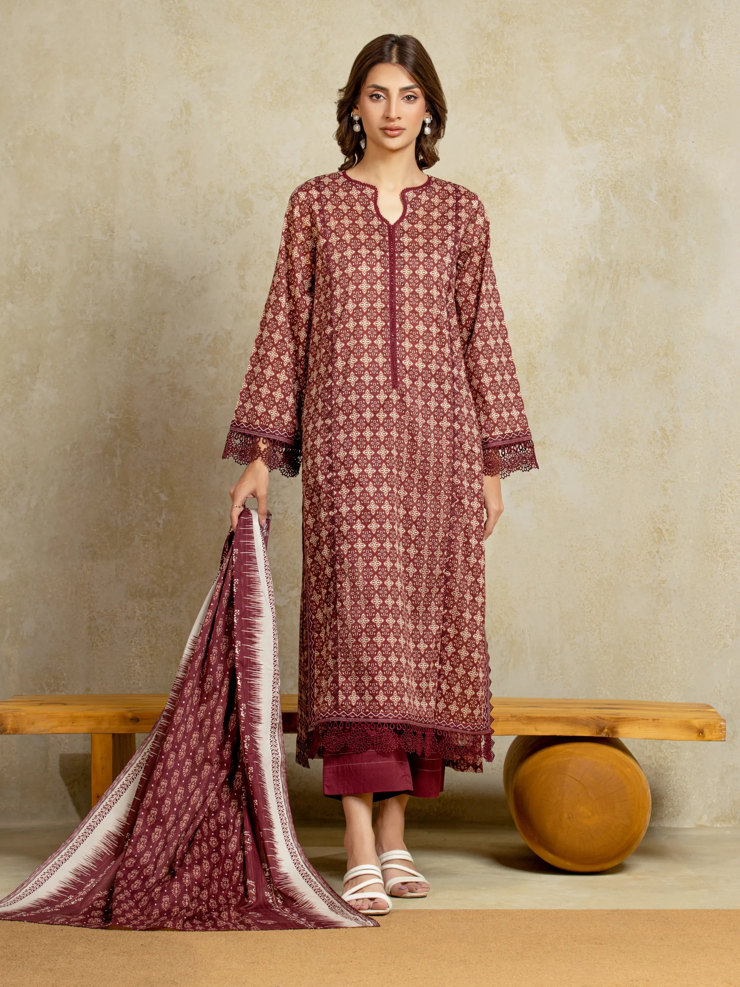 The Edenrobe EWU5A3-35970-3P Khaddar is a masterpiece designed to make you feel like a queen on your special day. Crafted with exquisite attention to detail, this ensemble is a perfect blend of elegance, comfort, and style.