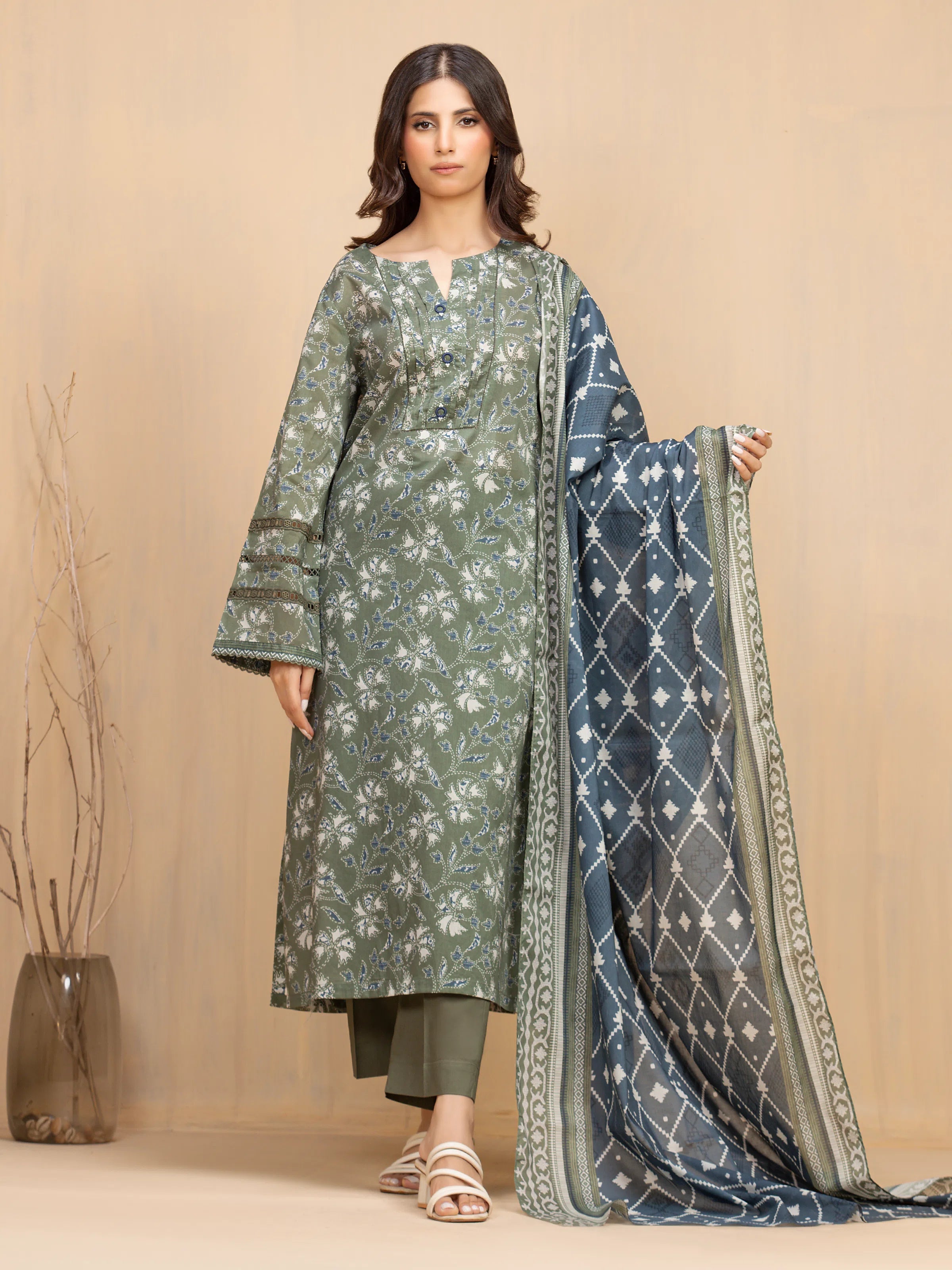 The Edenrobe EWU5A3-36019-3P Khaddar is a masterpiece designed to make you feel like a queen on your special day. Crafted with exquisite attention to detail, this ensemble is a perfect blend of elegance, comfort, and style.