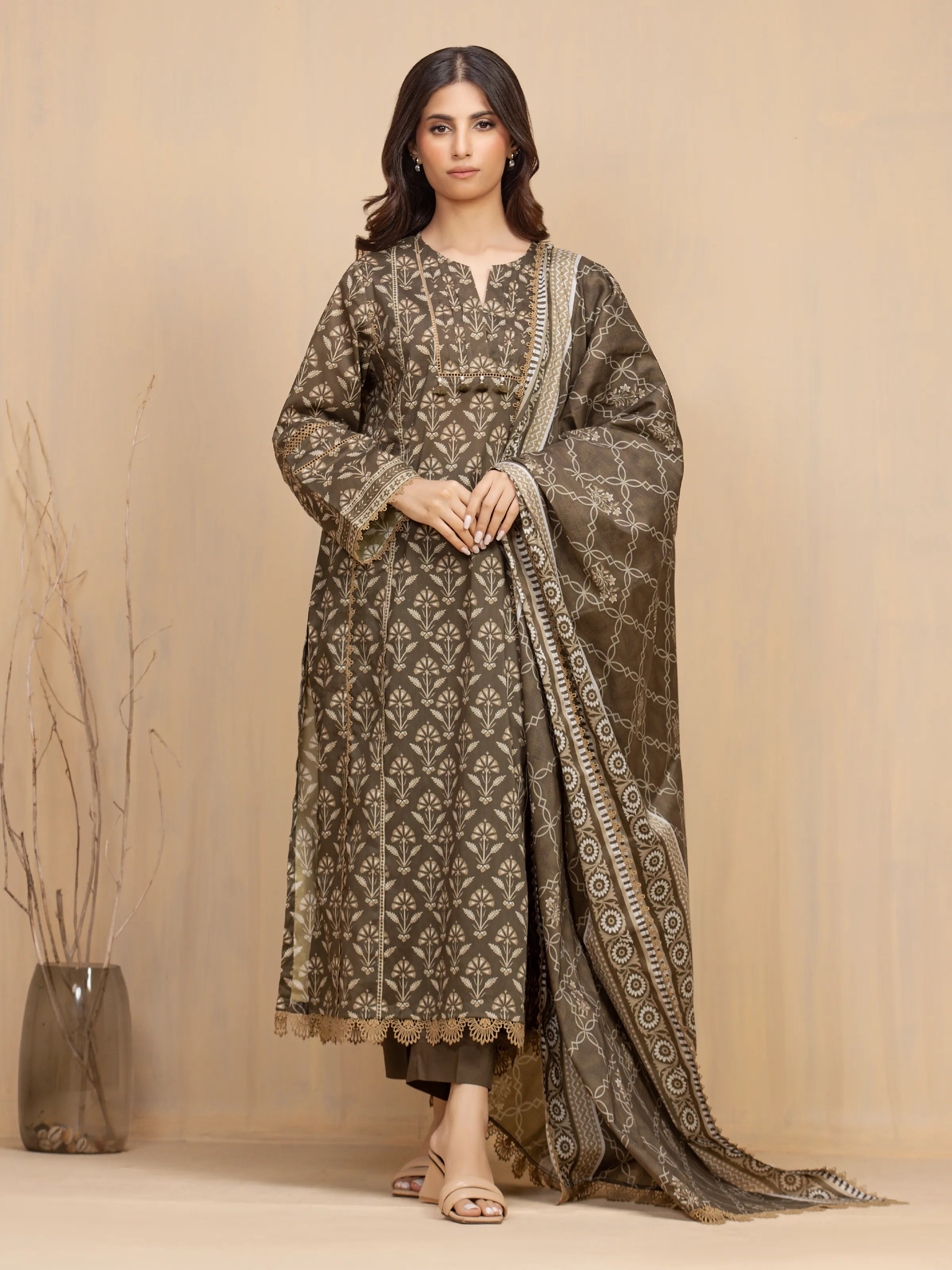 The Edenrobe EWU5A3-36022-3P Khaddar is a masterpiece designed to make you feel like a queen on your special day. Crafted with exquisite attention to detail, this ensemble is a perfect blend of elegance, comfort, and style.