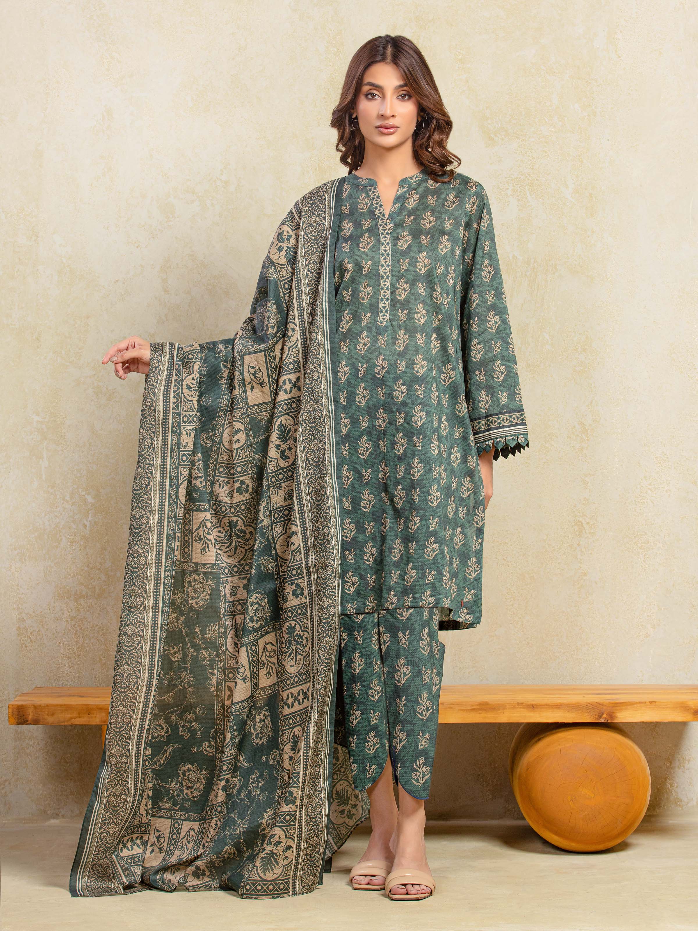 The Edenrobe EWU5A3-36096-3P Khaddar is a masterpiece designed to make you feel like a queen on your special day. Crafted with exquisite attention to detail, this ensemble is a perfect blend of elegance, comfort, and style.