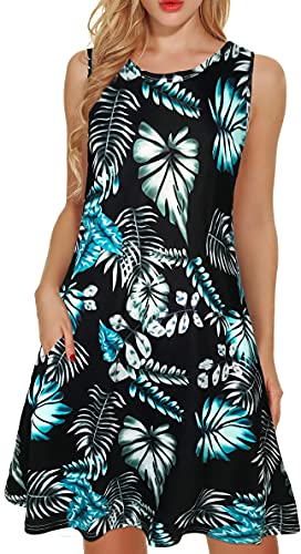 Floral Summer Dresses for Women Beach Floral Tshirt Sundress Sleeveless Pockets Casual Loose Tank Dress - elescat