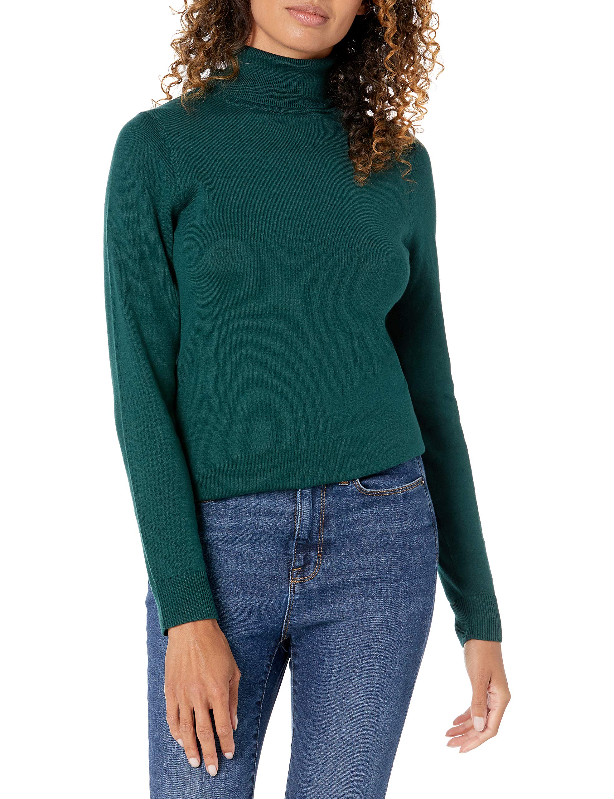 Green Women's Sweater Lightweight Long-Sleeve Turtleneck - AmEss