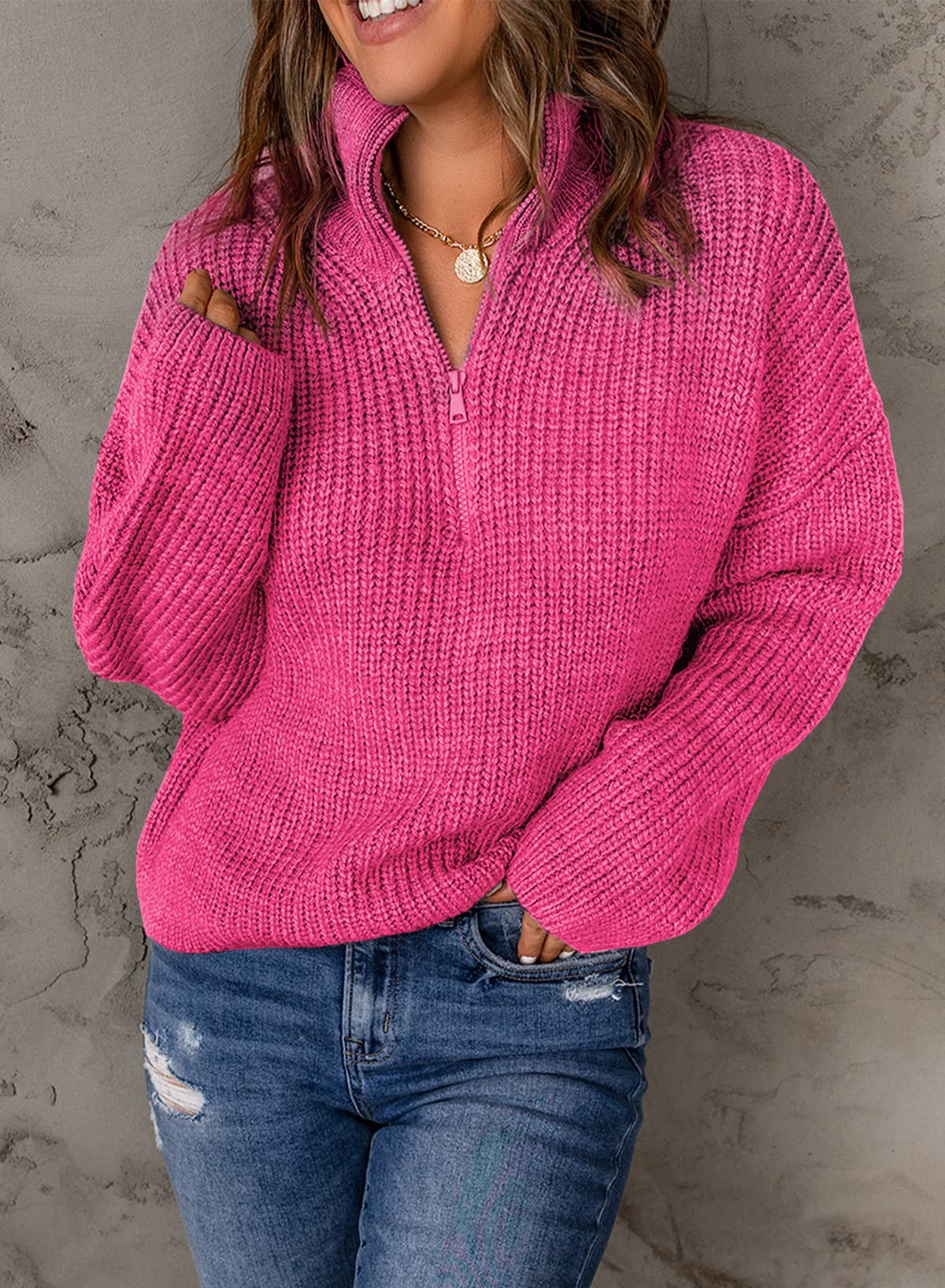 - FEATURES - Zipper sweater for women / fashion sweatshirt sweaters with quarter zip / pullover sweater tops / collared V neckline with zip / long sleeves waffle knit / smooth practical zipper / chunky thick / comfy stretchy knit fabric / ultra soft feeling / plain Color / ribbed neckline and hem detail / oversized loose fit / casual, vintage and cute Style / for spring, fall, winter / Size : S, M, L, XL
