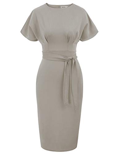 Grey Women's Bodycon Pencil Dress Office Wear To Work Dresses With Pocket Belt Jasambac