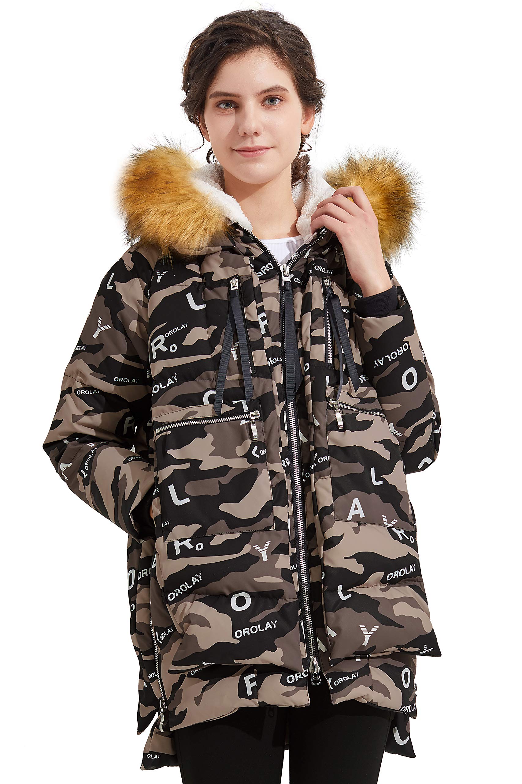 Khaki Camo Women's Thickened Down Jacket with Filler and Duck Feather - Orolay