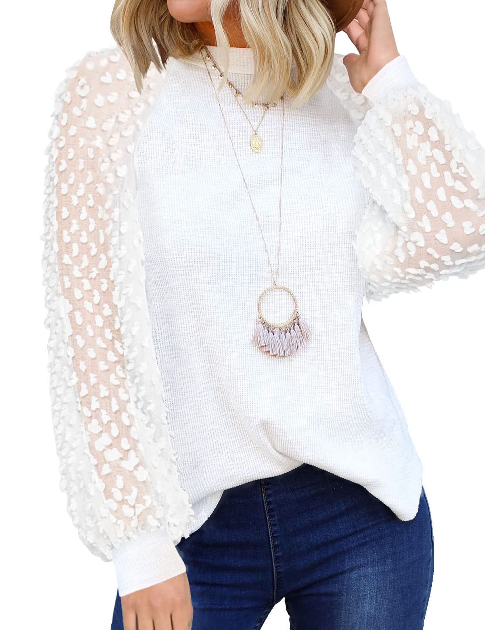 - Casual Long Sleeve tops, crew neck, ballon sleeve with lace arms, knit top, solid, raglan shirt, loose fit t shirts