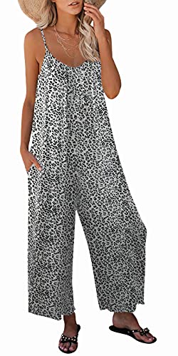 Leopard Pattern A Casual Sleeveless Strap Loose Adjustable Jumpsuits Stretchy Long Pants Romper with Pockets - SNUGWIND