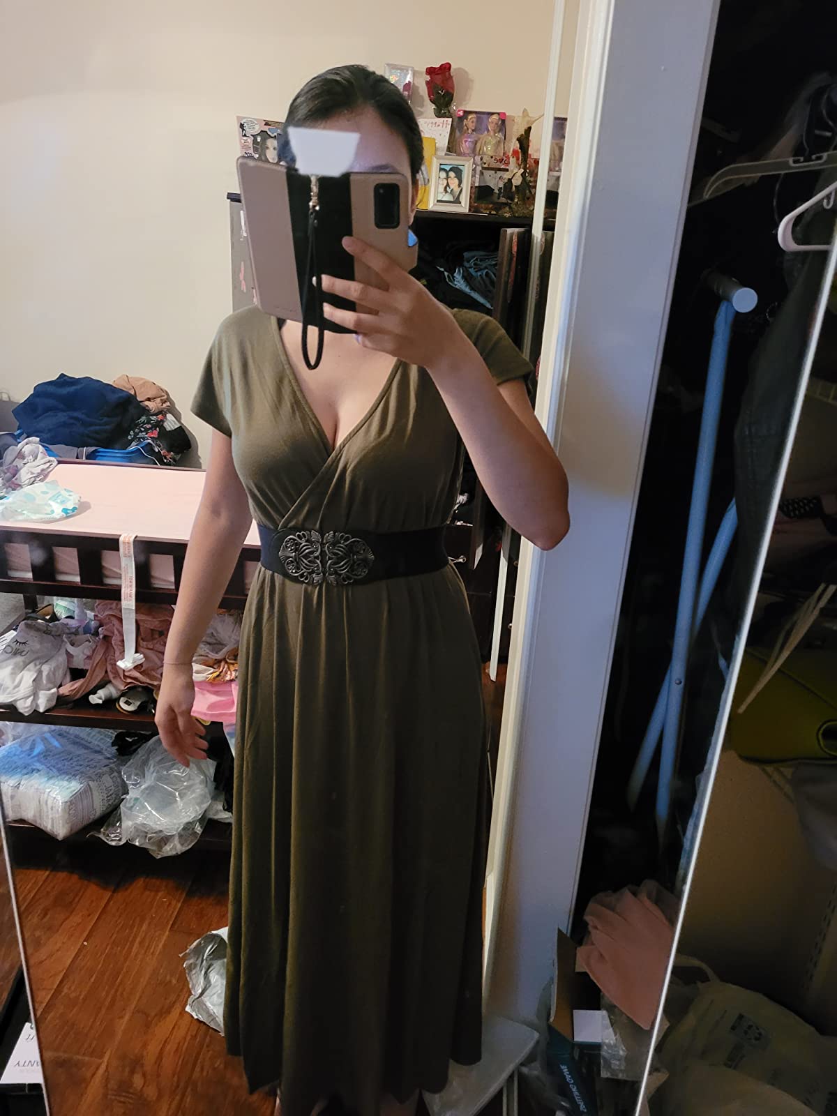 • Cap Sleeve and V Neck,Vintage Sexy Style make you elegant and sexy,Ruffle Style on the Waist,he draped on the waist is slightly looser to cover the waist flaw.The waistline of this dress is very elastic.