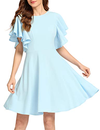 Scoop Neck, Flutter Sleeve, High Waist, Above Knee, Invisible Zipper Back