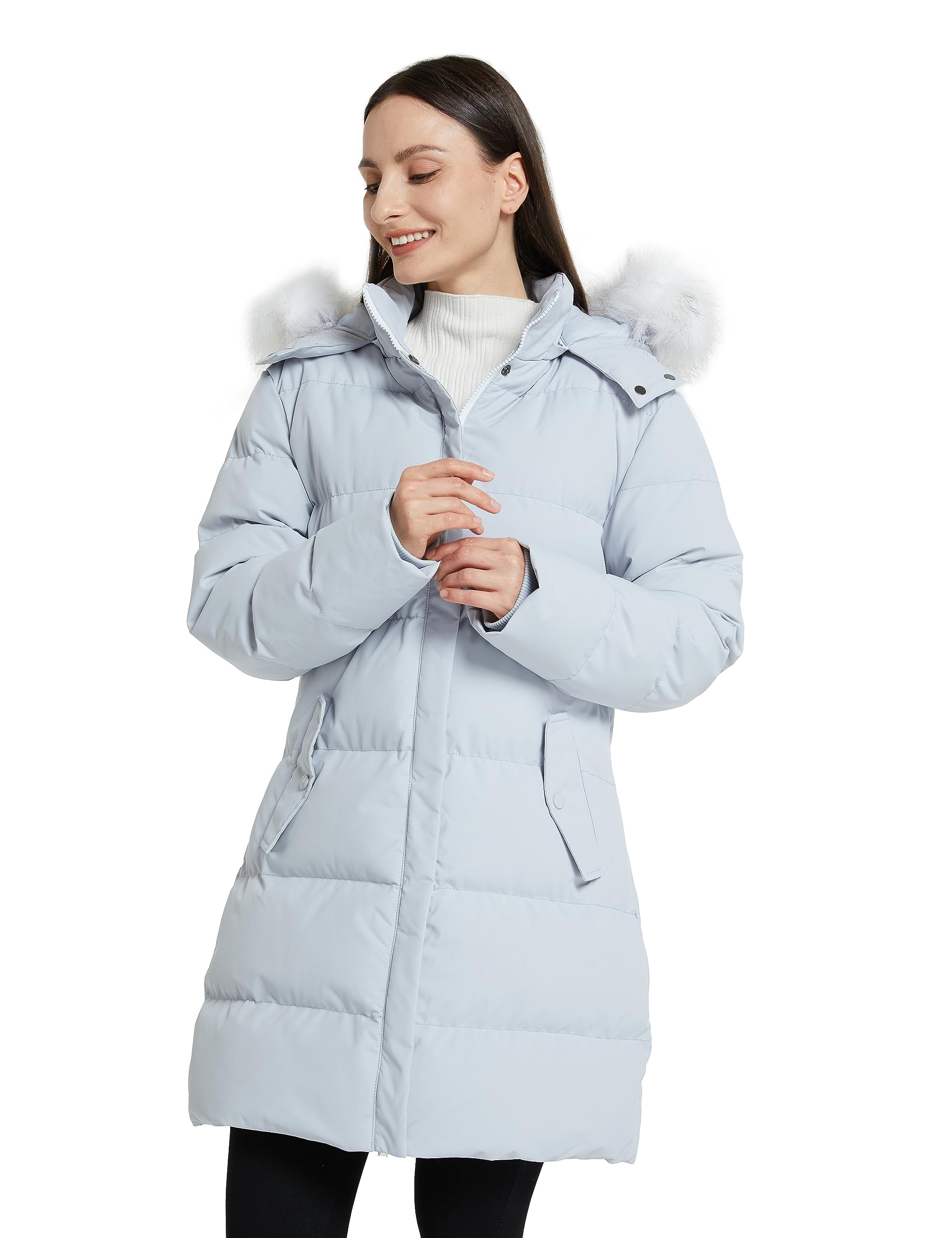 - Head to thigh warmth - When used, the detachable hood lined with a removable faux-fur trim gives additional warmth and protection for your head, neck, and ears. Perfect for when you're walking outdoors.