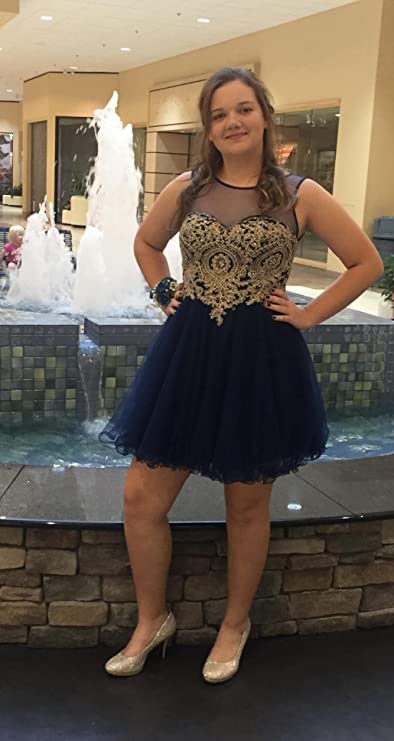 • 2021 Junior's Homecoming Dresses Rhinestones Gold Applique Short Prom Dresses