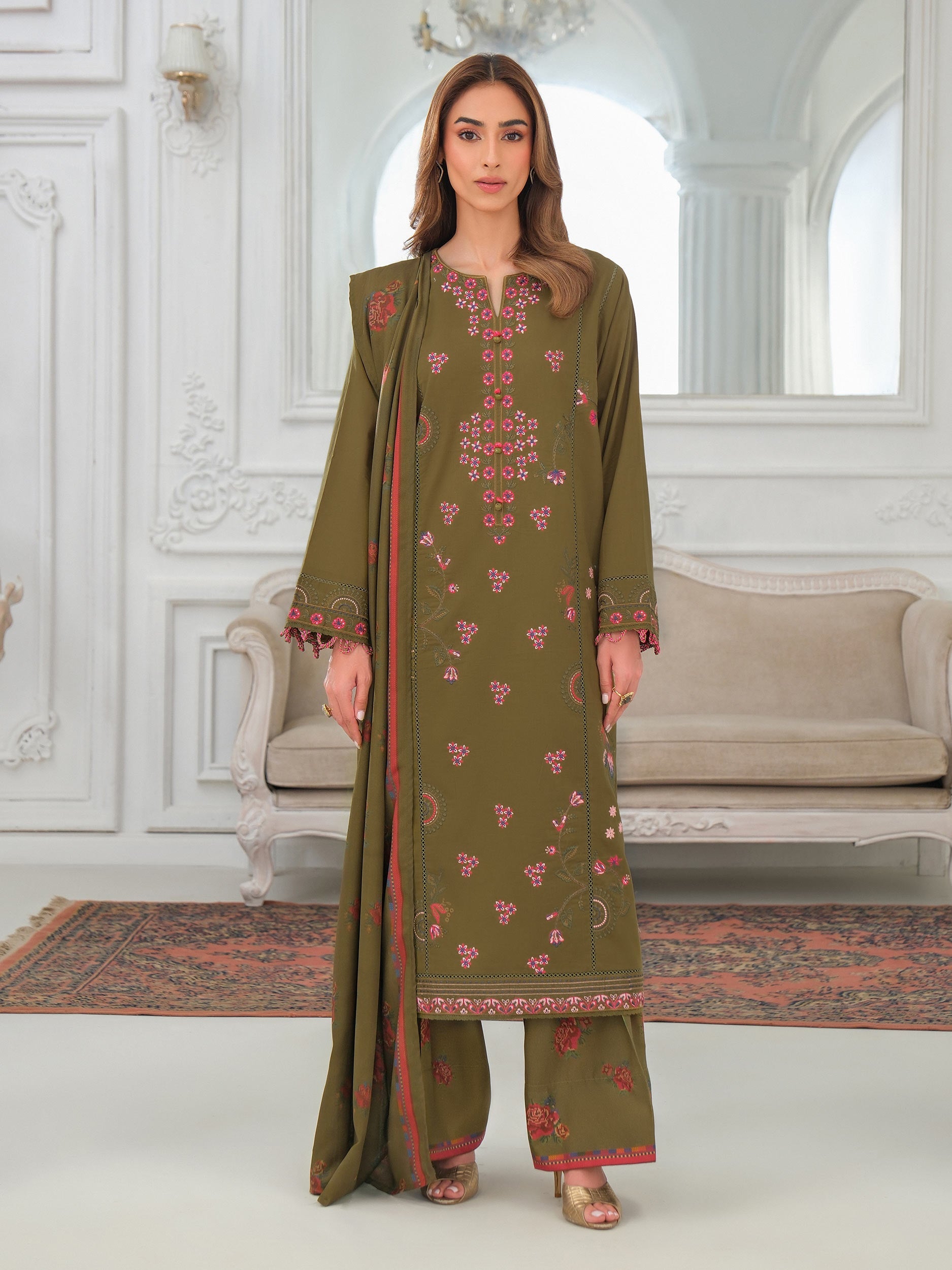 The Limelight U3994SU-3PC-360 Khaddar is a masterpiece designed to make you feel like a queen on your special day. Crafted with exquisite attention to detail, this ensemble is a perfect blend of elegance, comfort, and style.