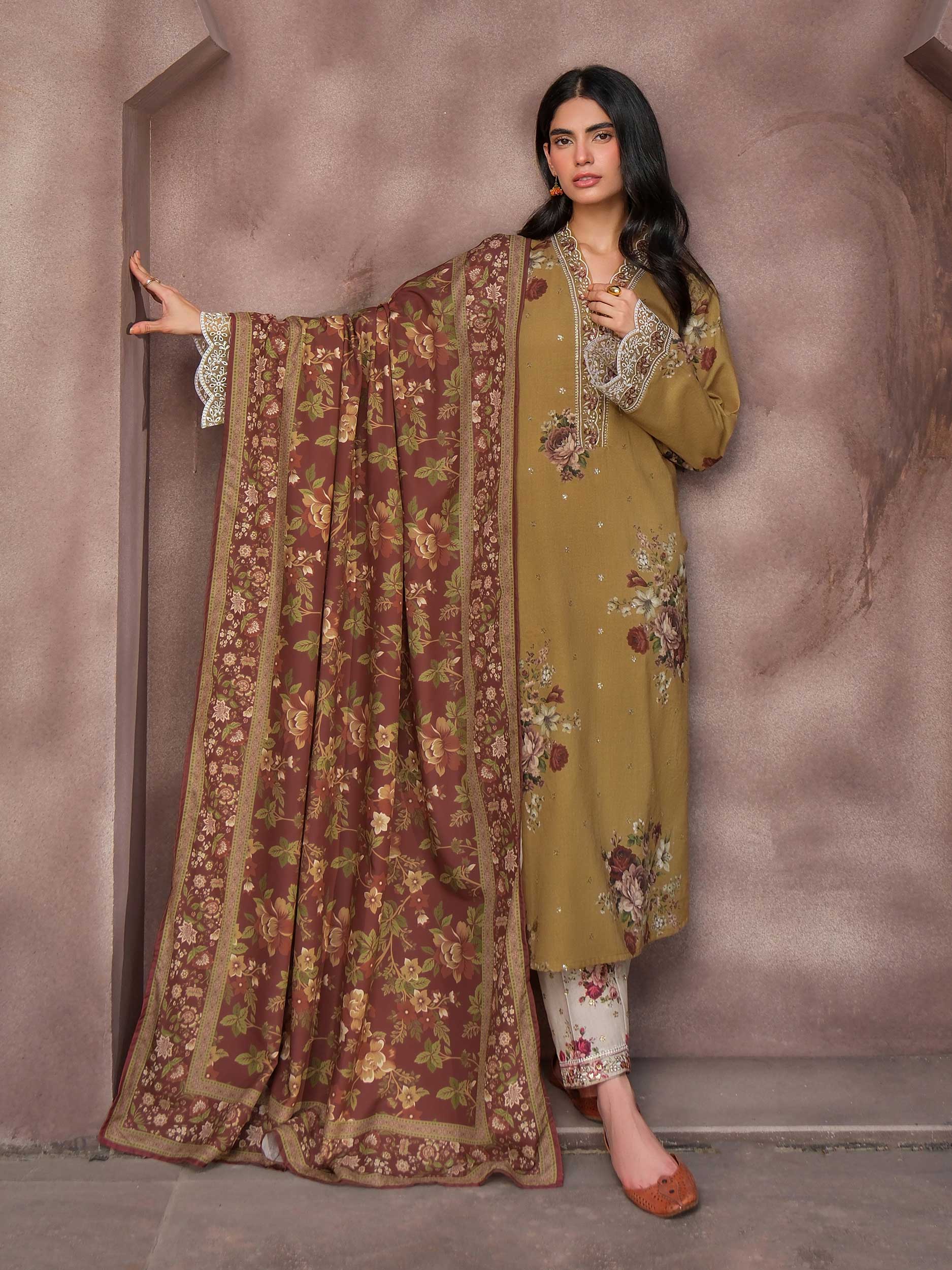 The Limelight U4101SU-3PC-360 Khaddar is a masterpiece designed to make you feel like a queen on your special day. Crafted with exquisite attention to detail, this ensemble is a perfect blend of elegance, comfort, and style.
