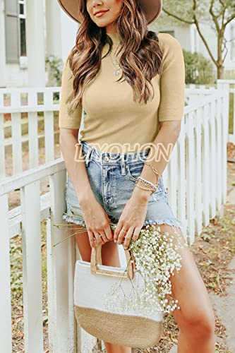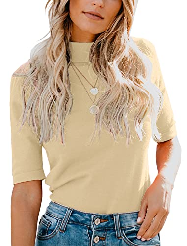 LIYOHON Womens Tops Dressy Casual Fall Cute Tops Mock Turtleneck Business White T Shirts Apricot-M