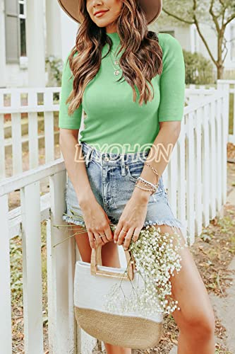 LIYOHON Womens Tops Dressy Casual Fall Cute Tops Mock Turtleneck Business White T Shirts Aquamarine-M