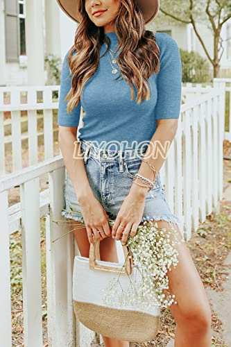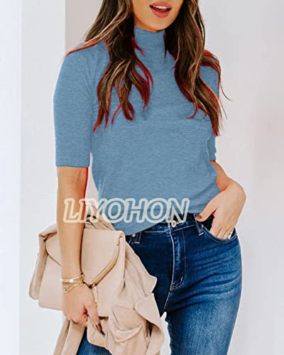 LIYOHON Womens Tops Dressy Casual Fall Cute Tops Mock Turtleneck Business White T Shirts Cornflower-M