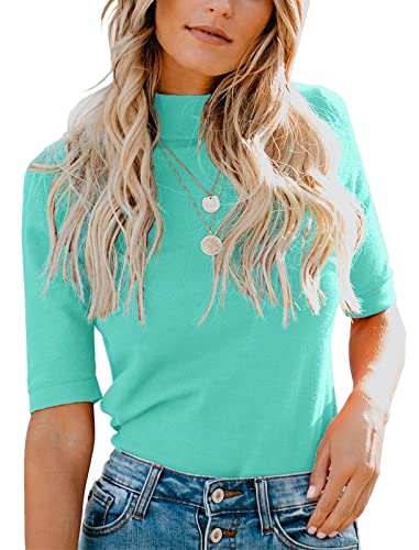 LIYOHON Womens Tops Dressy Casual Fall Cute Tops Mock Turtleneck Business White T Shirts Mint Blue-M