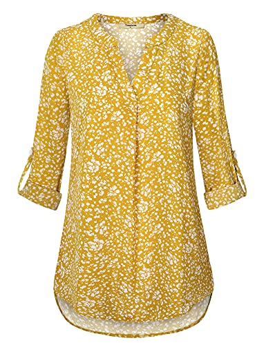 • Stylish Design:Wrinkle Free Material,No stretch,Henley V Neck,3/4 Cuffed Sleeve,Curved Hem,Pleated Front,Floral Printed Chiffon Blouse Shirt Top.