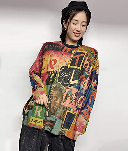 • ✅ Eye-Catching Design: The vintage oversized jumpers featured with graphic print, colors and pattern are rich and colorful; Specially, cute cat pattern design(Picture1 as color option) is trendy design that will be a hit when you wear this top and will be a great choice for the cat lover; Sweater for Women loose fit but not too baggy and crewneck, long sleeve for decent and casual look;