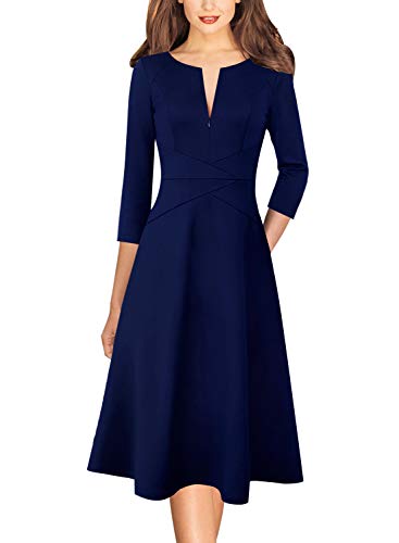 Navy Blue Sleeve Womens Elegant Front Zipper Slim Work Business Office Party Cocktail A-line Dress Vfshow
