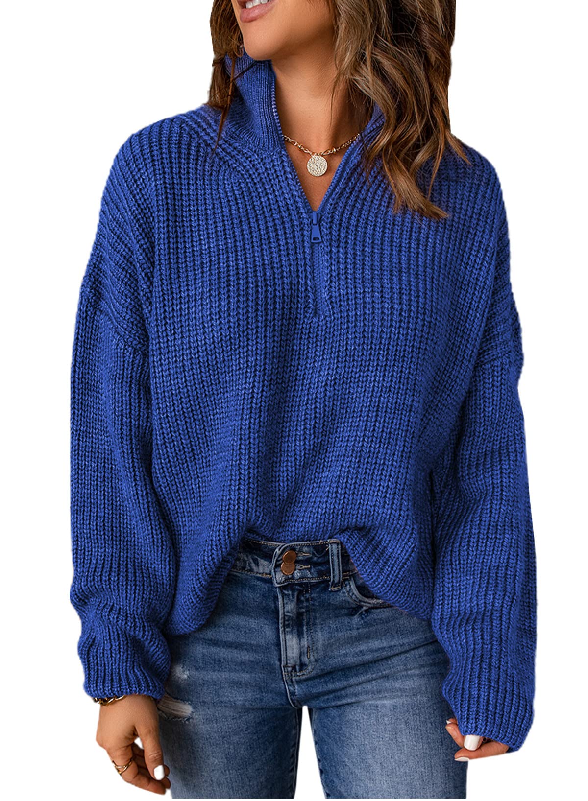 - FEATURES - Zipper sweater for women / fashion sweatshirt sweaters with quarter zip / pullover sweater tops / collared V neckline with zip / long sleeves waffle knit / smooth practical zipper / chunky thick / comfy stretchy knit fabric / ultra soft feeling / plain Color / ribbed neckline and hem detail / oversized loose fit / casual, vintage and cute Style / for spring, fall, winter / Size : S, M, L, XL