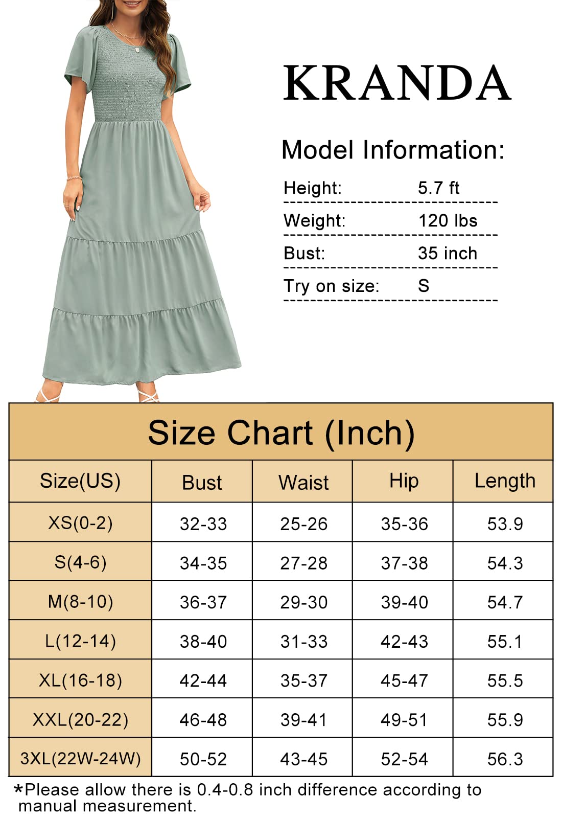 - Style: ?We couldn't love these classic Solid color dresses more. The shape is so flattering and we owe it all to the full elastic bodice. The flutter sleeve, and smocking detail,self-tie/keyhole on back add such a pretty detail on this basic maxi. Plus this makes it extra comfortable. As for the material, it's soft,comfortable friendly to your skin,perfect for Spring,Summer and Fall days!