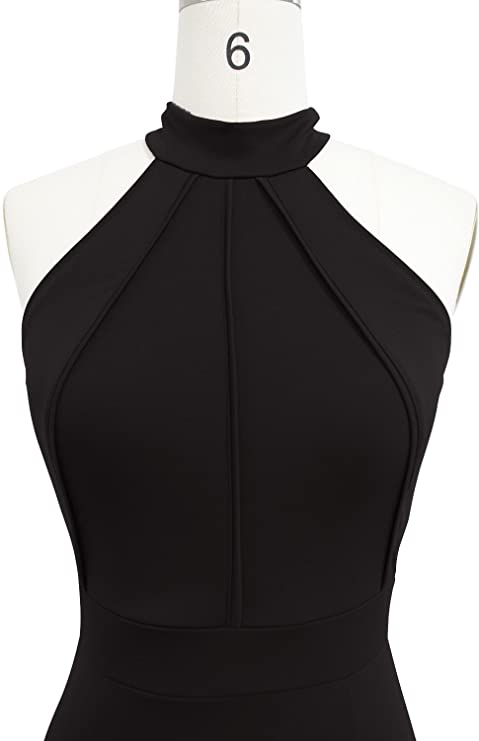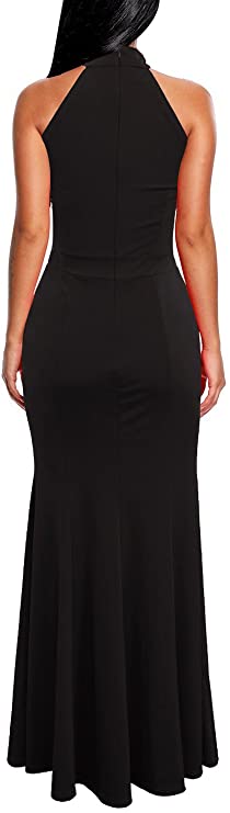 - Halter Neck, Sleeveless, Solid, Racer Front Design Zipper Closure at the Dress Back