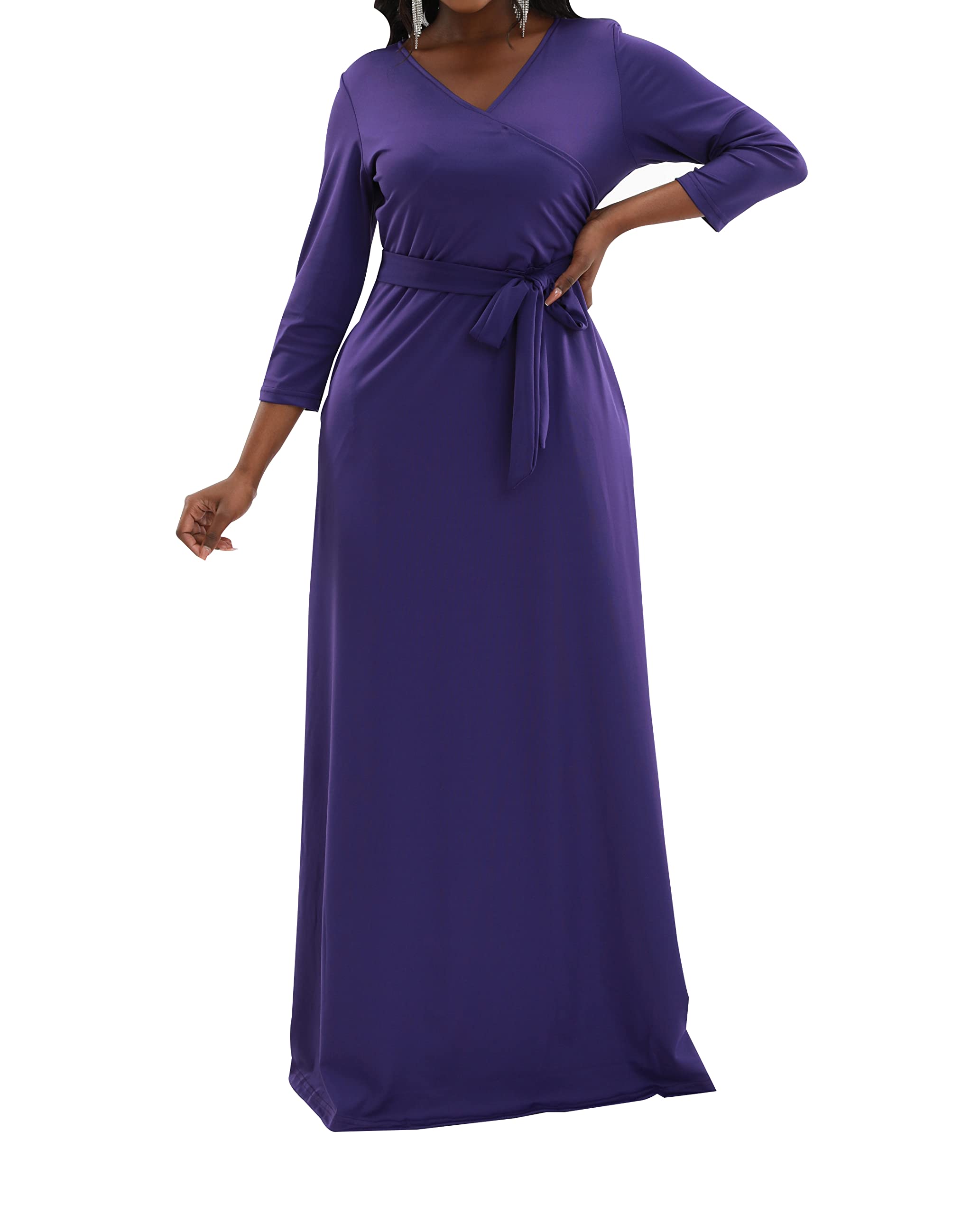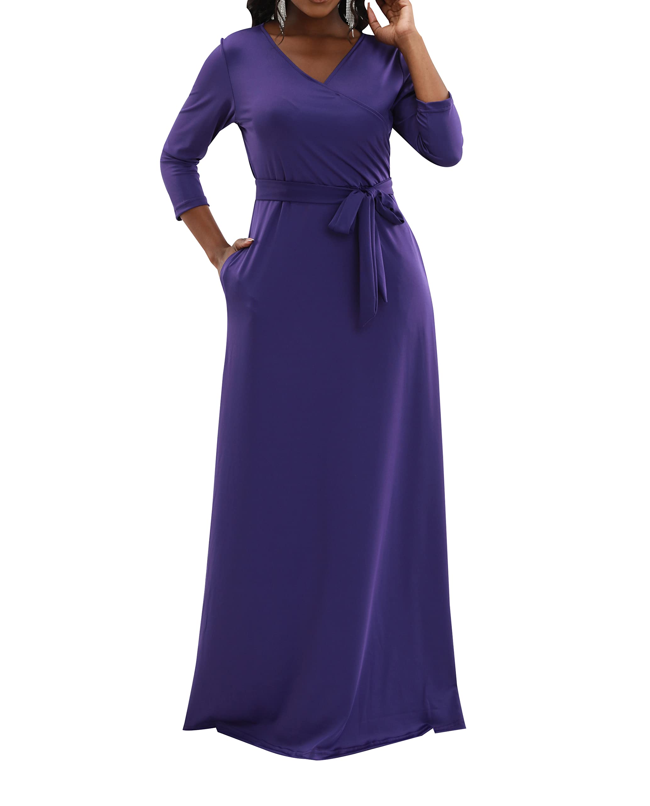 Purple Womens Casual Floral Print Long Maxi Dress Plus Size Plain Part – Original Brand