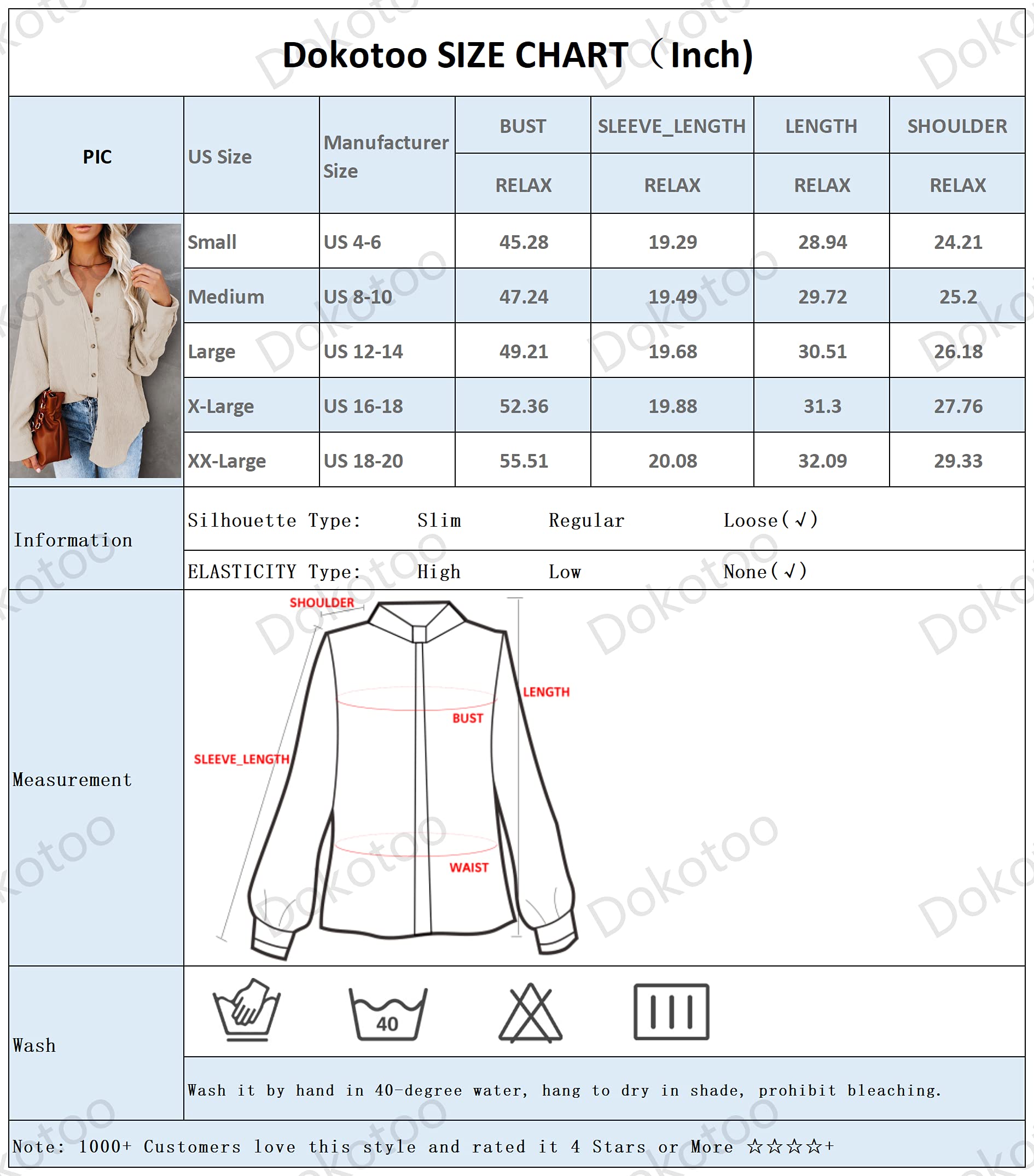• Dokotoo womens corduroy button down shirt is made with high-quality fabric. Soft, lightweight and comfortable to wear