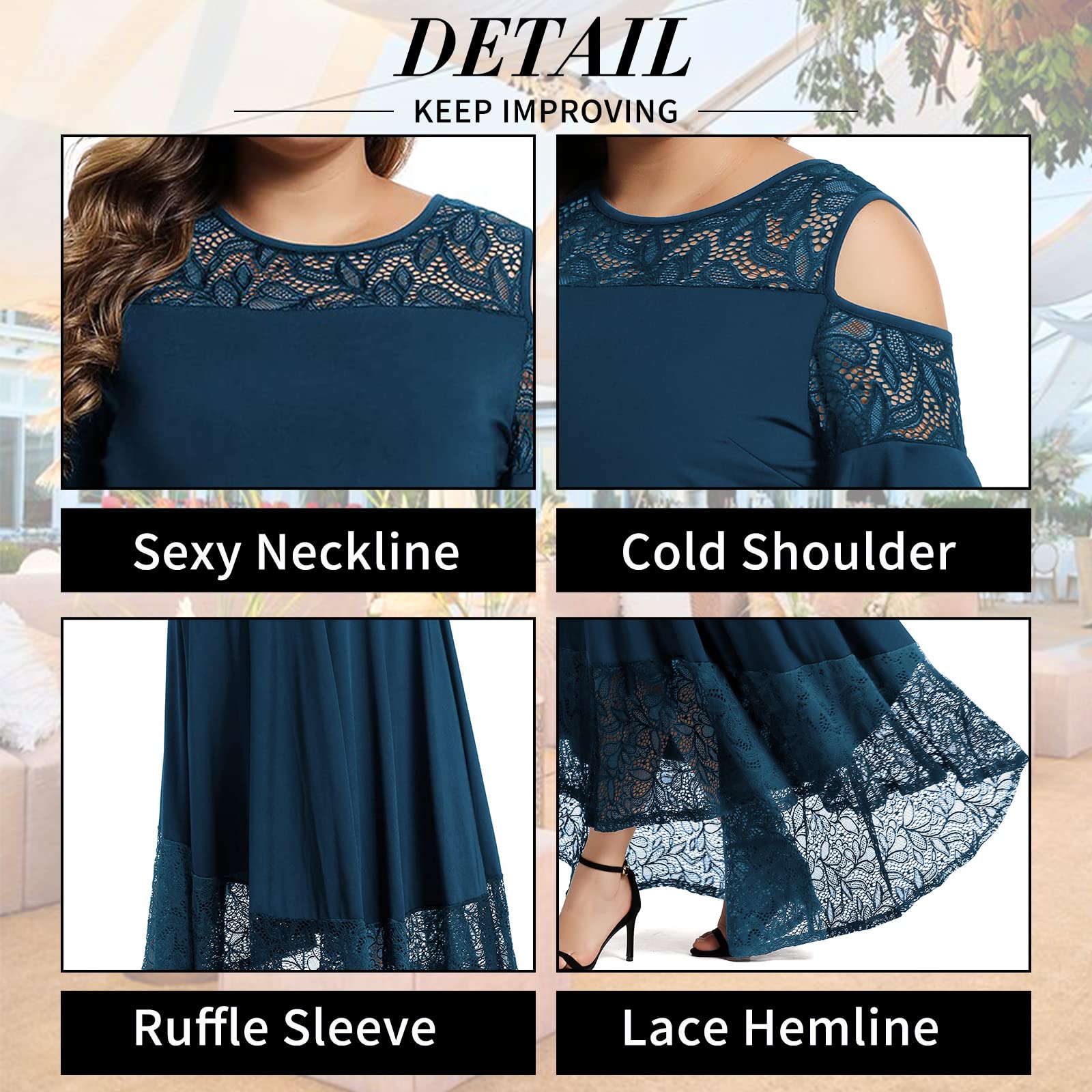 Purple Womens Plus Size Lace Cold Shoulder Long Swing Evening Party Maxi Dress - LALAGEN