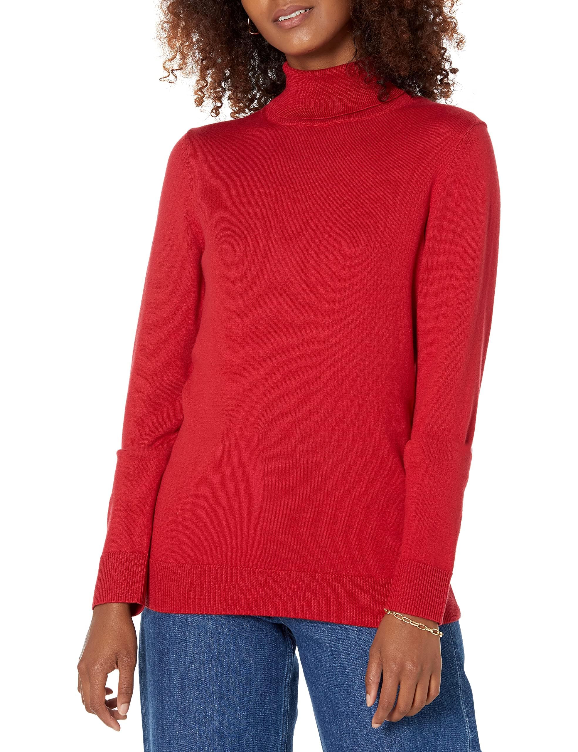 Red Women's Sweater Lightweight Long-Sleeve Turtleneck - AmEss