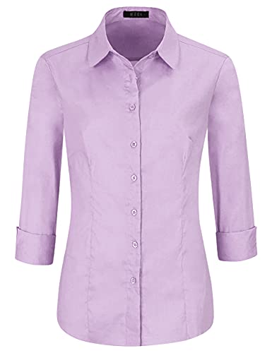Right Purple Womens Slim-Fit Long Sleeve Stretchy Button Down Collar Office Formal Casual Shirt Blouse - EZEN