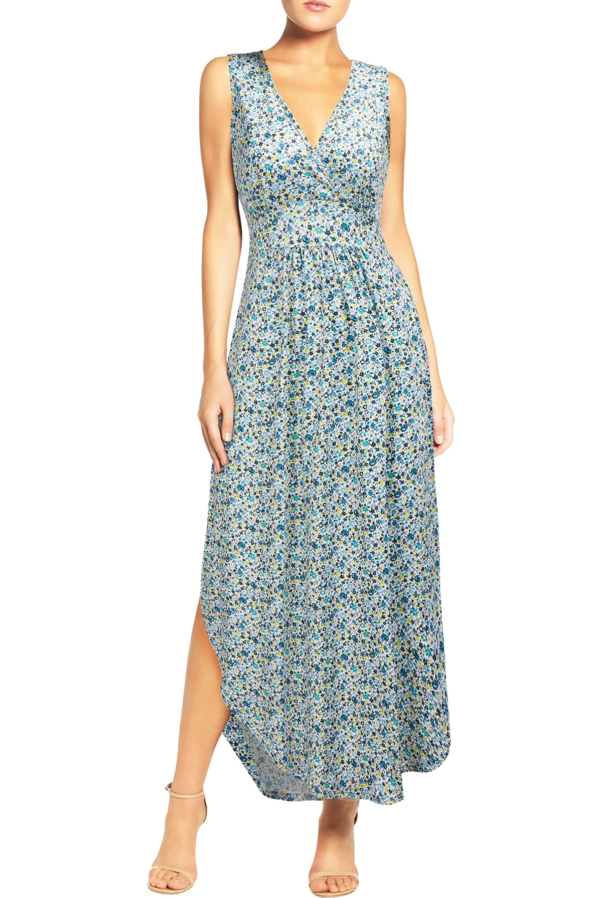 Sea Green White Women Sleeveless Deep V Neck Pocket Loose Long Dress Split Maxi Casual Dresses - WOOSEA