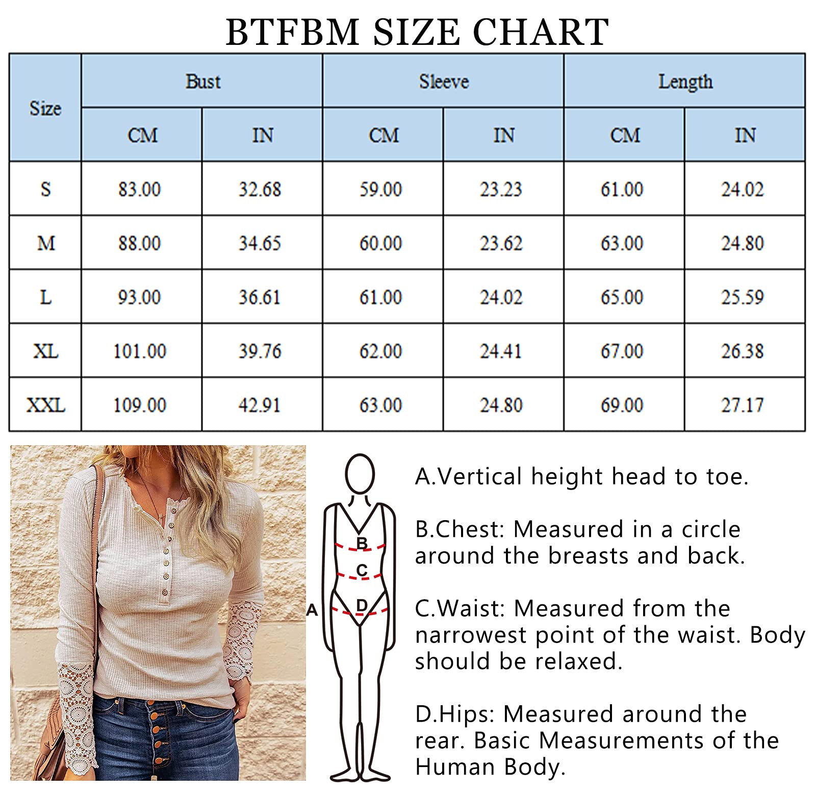 - PERFECTLY BLENDS COMFORT AND FASHION - The Long-Sleeved Shirt Presents Comfort And Fashion Standards In Perfect Harmony! With a Rib Structure And a Plain-Colored Design For a Great Basic Look. Figure-Hugging Cut And Is Soft Jersey Fabric That Flatters The Skin. The Lace Crochet At The Feminine Deep V Neck And Sleeve's Hem Is Given a Romantic Touch, Also Is Further Eye-Catching Details That Make The Shirt a Visual Highlight
