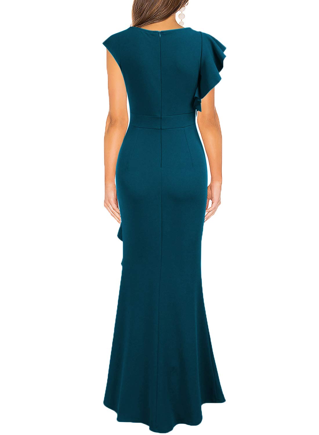 Teal-color Women's Split Bodycon Mermaid Evening Cocktail Long Dress - Woosea