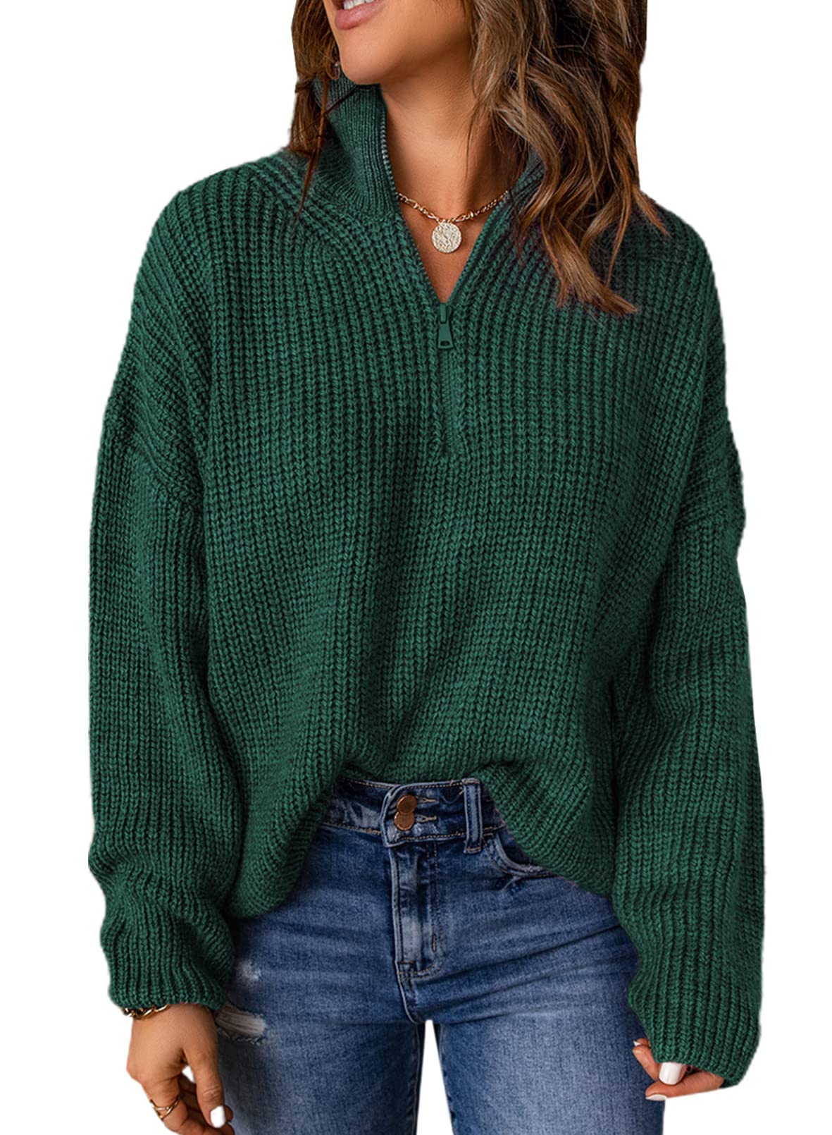 - FEATURES - Zipper sweater for women / fashion sweatshirt sweaters with quarter zip / pullover sweater tops / collared V neckline with zip / long sleeves waffle knit / smooth practical zipper / chunky thick / comfy stretchy knit fabric / ultra soft feeling / plain Color / ribbed neckline and hem detail / oversized loose fit / casual, vintage and cute Style / for spring, fall, winter / Size : S, M, L, XL