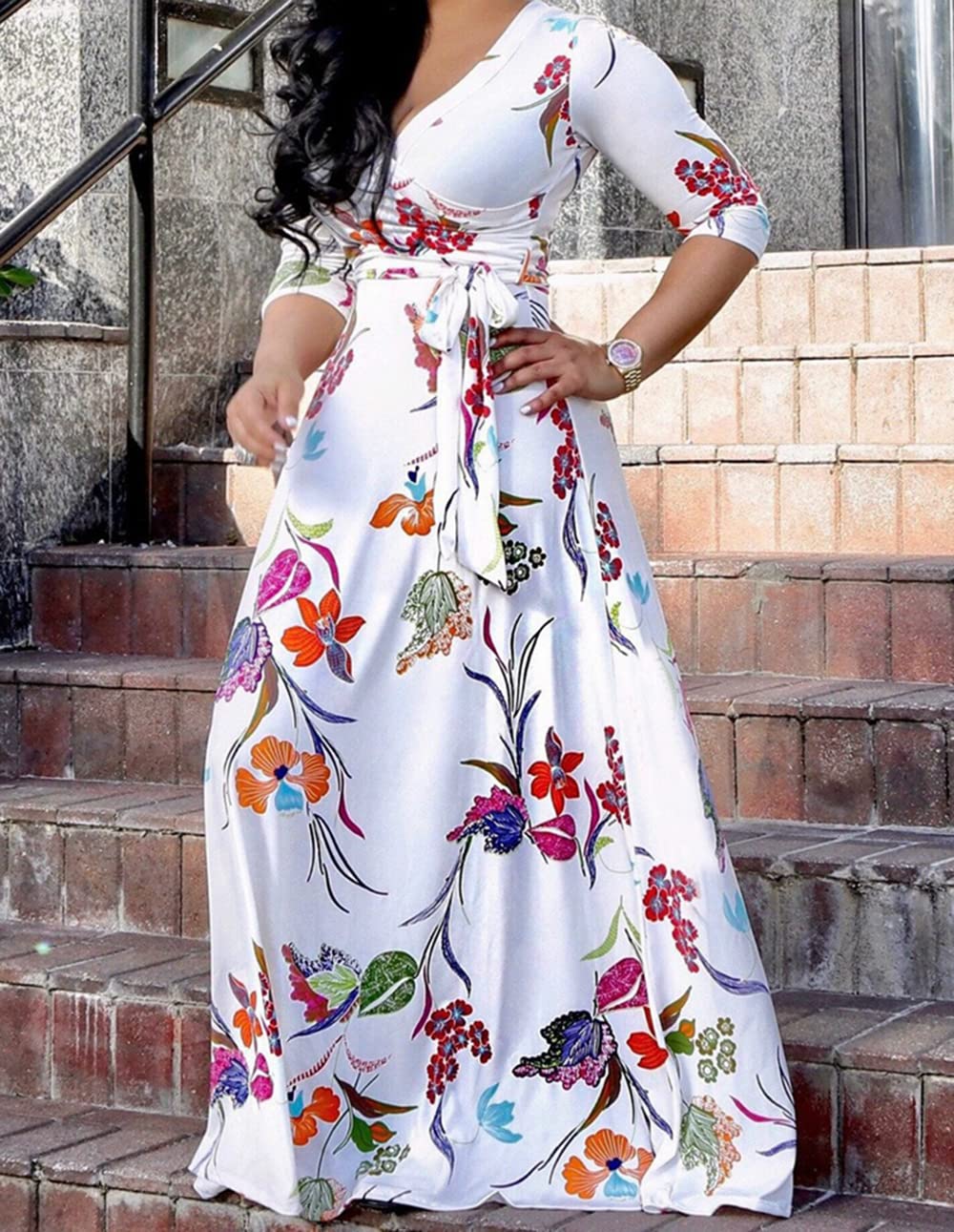 - This vibrant maxi dress caters to most curves and fluffiness with multiple sizes, it's easy to select the correct size for yourself.