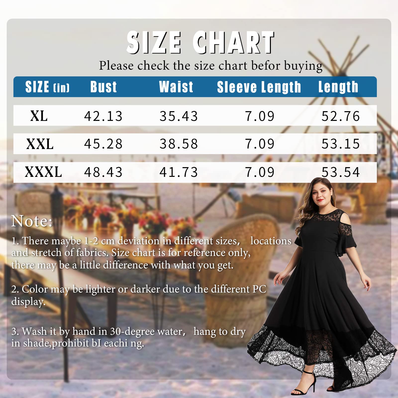 - Washing: This plus size dress should be essential piece in your summer wardrobe. Wash it by hand in 30-degree water, hang to dry in shade, prohibit bleaching.