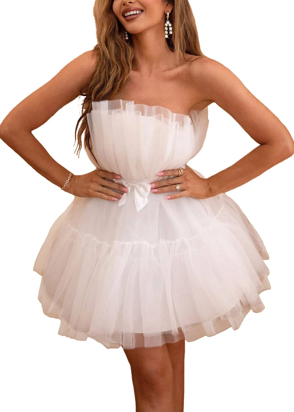 - Attractive Design: Spaghetti Strap bow shows the slender neck, leaving people with charm. At the same time, it also shows the collarbone, creating a skinny beauty, which makes people tall and charming. It adds a playful and lovely atmosphere to the dress. There is some looseness, which makes the dress more chic and cute, and makes the dress more design.The glitter on the mesh is very eye-catching.