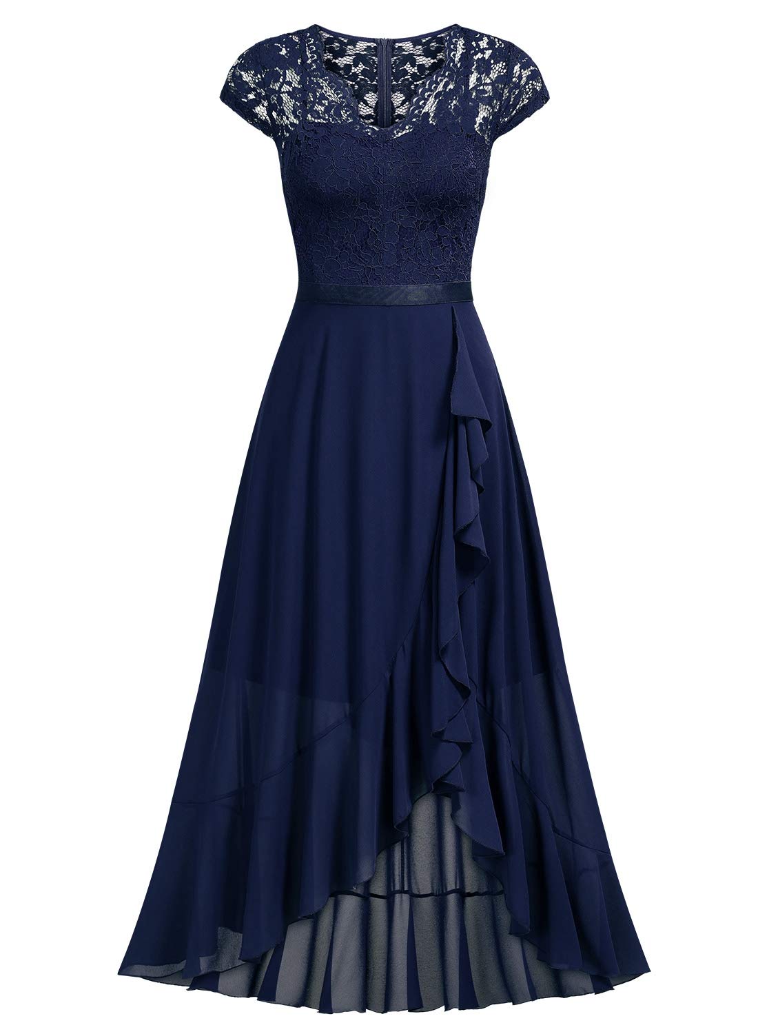 Willow Green Women's V Neck Elegant Lace Ruffle Bridesmaid Maxi Dress - Miusol