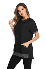Soft and comfy summer tshirt for women. Cozy, lightweight feel material. Vibrant color.No fade and shrink.Size:S-2XL.Many colors for you to choose. Fit for any body. Classic solid color tee and contrast color tops with side pockets. Cute for a place to rest hands or hold your keys or something . Cotton+polyester