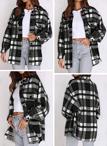 • [Oversized Flannel Shirt]-This long sleeve shacket jacket is featured with plaid print, shacket, button down, soft fabric, oversized, loose fitting, casual style,great to match with basic T-shirt, crop top, leggings, jeans, bodycon dress, sneakers or high heels for casual look that's easy to love all season long.