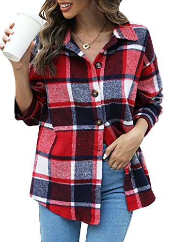- [Oversized Flannel Shirt]-This long sleeve shacket jacket is featured with plaid print, shacket, button down, soft fabric, oversized, loose fitting, casual style,great to match with basic T-shirt, crop top, leggings, jeans, bodycon dress, sneakers or high heels for casual look that's easy to love all season long.