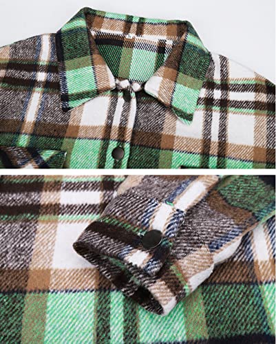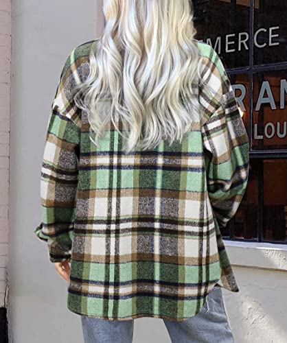 Women's Button Down Plaid Flannel Shirt Boyfriend Long Sleeve Oversized Blouses Tops 6020 Green Small
