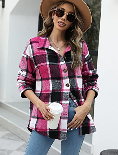 - [Oversized Flannel Shirt]-This long sleeve shacket jacket is featured with plaid print, shacket, button down, soft fabric, oversized, loose fitting, casual style,great to match with basic T-shirt, crop top, leggings, jeans, bodycon dress, sneakers or high heels for casual look that's easy to love all season long.
