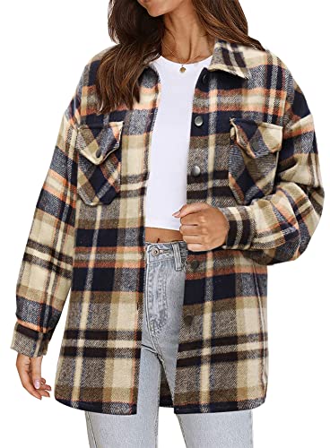 - [Oversized Flannel Shirt]-This long sleeve shacket jacket is featured with plaid print, shacket, button down, soft fabric, oversized, loose fitting, casual style,great to match with basic T-shirt, crop top, leggings, jeans, bodycon dress, sneakers or high heels for casual look that's easy to love all season long.