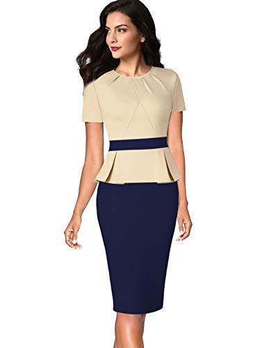 Womens Pleated Crew Neck Peplum Wear To Work Office Sheath Dress Vfshow