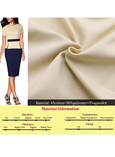 Style: Pleated Crew Neckline, Short Sleeve, Colorblock Design, Pleated Peplum Detail at Waist, Slim Fitting, Sheath Silhouette, A Concealed Back Zipper, Back Slit for easy walking.